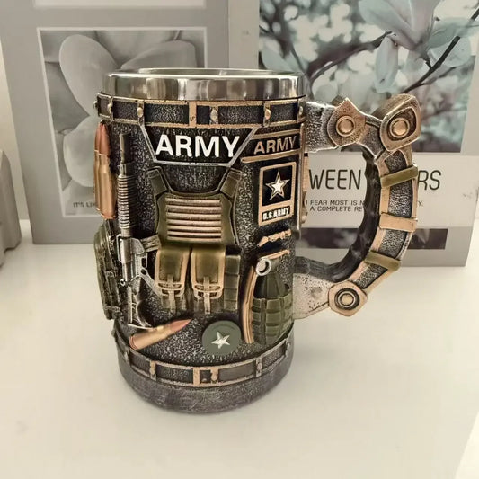 1pcs Navy Cup Air Force Anchor Plane Wine Mugs Resin Stainless Steel Army Beer Military Mug Men Birthday Gift Coffee Wine New